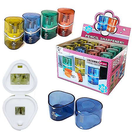 Точилка " KWELT " 3 отверстия с двумя контейнерами, цвет ассорти, картонная упаковка 22,5*16,5*13см