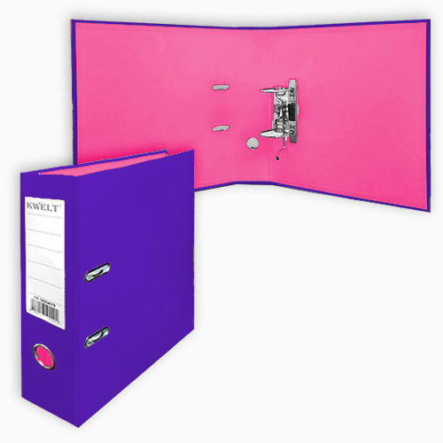 Папка-регистратор А4 " KWELT " сборная 75мм фиолетовая/розовая, ПВХ, двухсторонний, этикетка для маркировки, металлическая окантовка