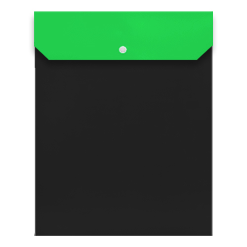 Папка на кнопке А4+ (260*360мм) " KWELT " Черная/зеленая 0,35мм непрозрачная