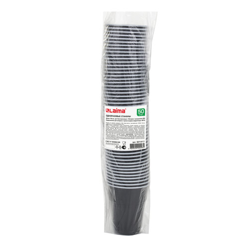 Стакан одноразовый бумажный 350/410 мл, D 90 мм, КОМПЛЕКТ 50 шт., однослойные, холодное/горячее, LAIMA ECO CRAFT, 608370