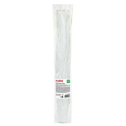 Стакан одноразовый, пластиковый 200 мл, КОМПЛЕКТ 100 шт., БЮДЖЕТ, белые, ПП, холодное/горячее, LAIMA, 600934