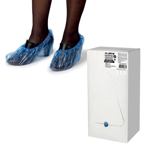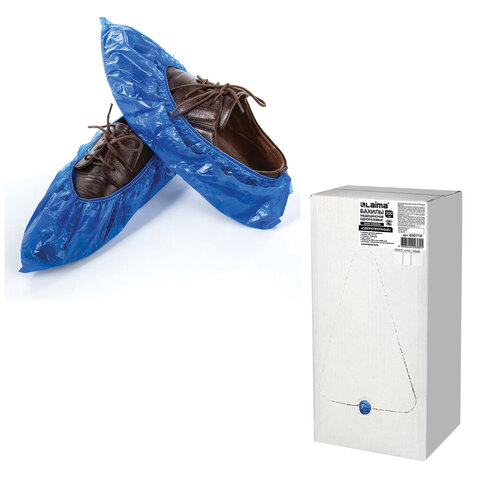 Бахилы КОМПЛЕКТ 100 шт. (50 пар) в упаковке, СТАНДАРТ, размер 40х14 см, 2,8 г, ПНД, LAIMA, 104979
