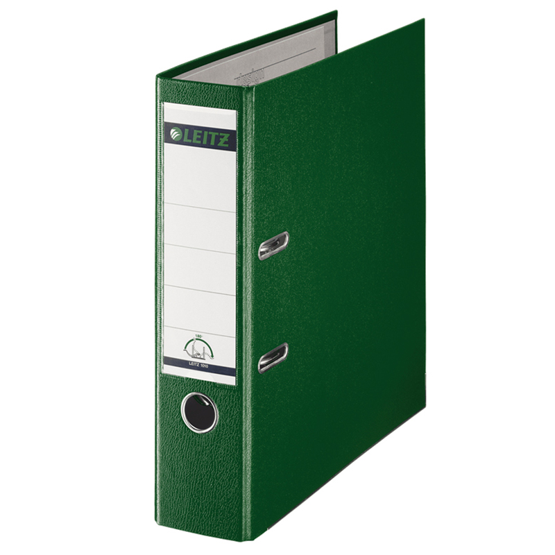 Папка-регистратор Leitz 180°, 80мм, пластик, зеленый