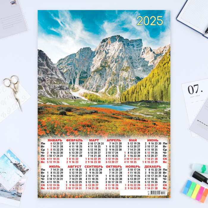 Календарь листовой А2 "Горы - 3" 2025 год, 42 х 60 см