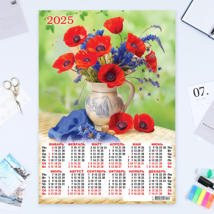 Календарь листовой А2 "Цветы - 5" 2025 год, 42 х 60 см