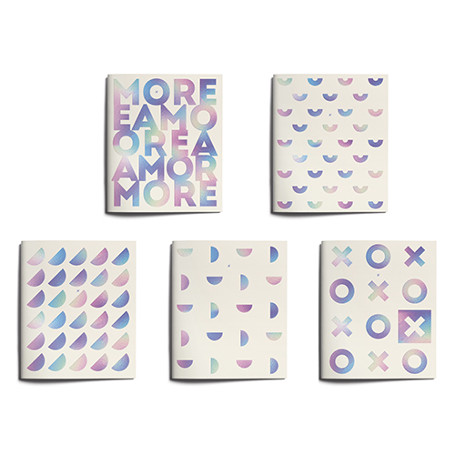 Тетрадь А5 48л " Lorex " клетка Holochrome, на скобе, офсет, мелованный картон, с запечаткой форзаца, soft touch, выборочный УФ-лак, 5 дизайнов