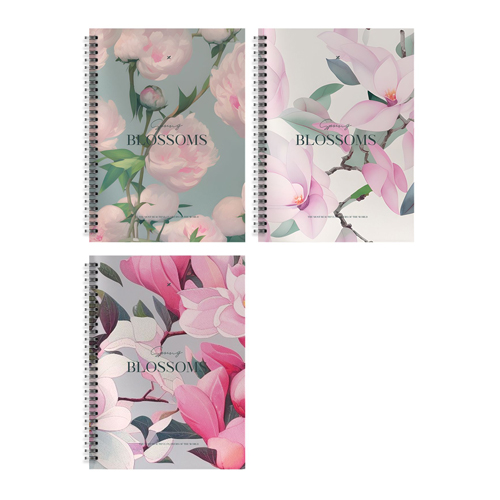 Тетрадь А4 96л " Lorex " спираль, клетка Blossoms, мелованный картон, офсет, запечатка форзаца,soft touch, 2 дизайна