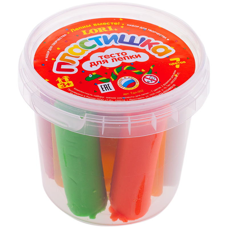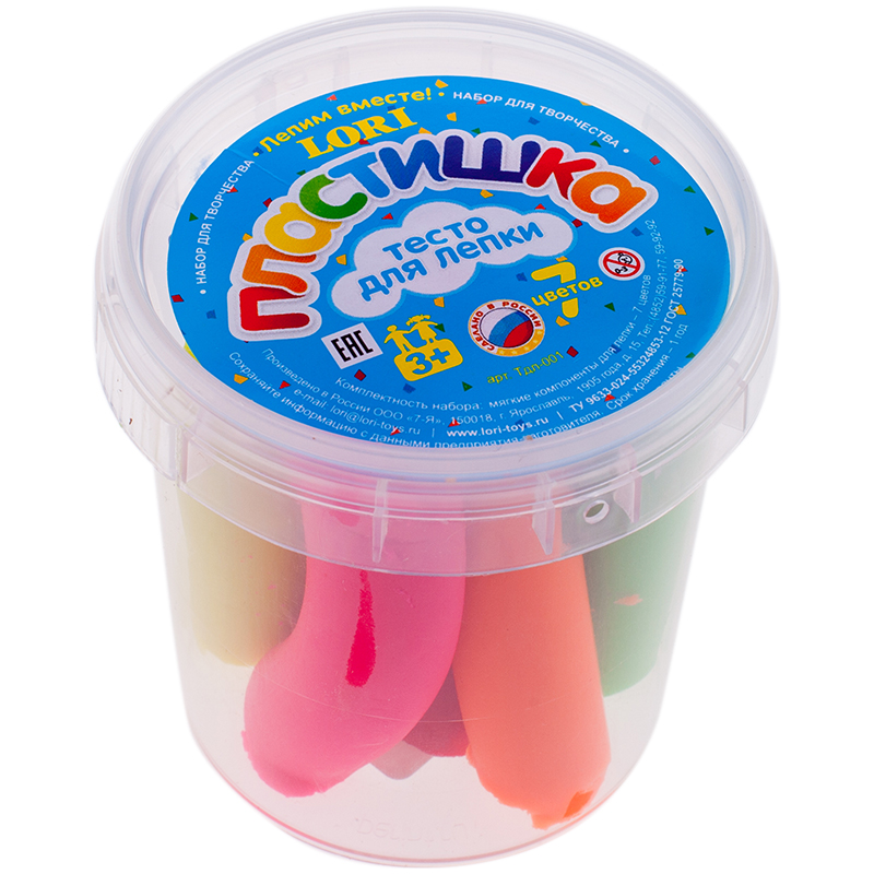 Тесто для лепки Lori "Пластишка", 07 цветов*24г, пластиковый стакан