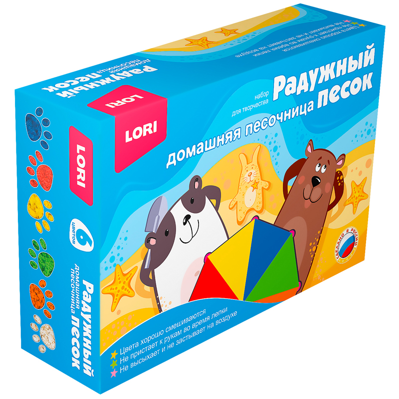 Песок для лепки Lori "Радужный песок", 06 цветов, 840г, в баночке, 2 формочки, картонная упаковка