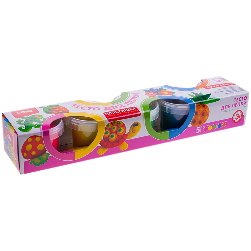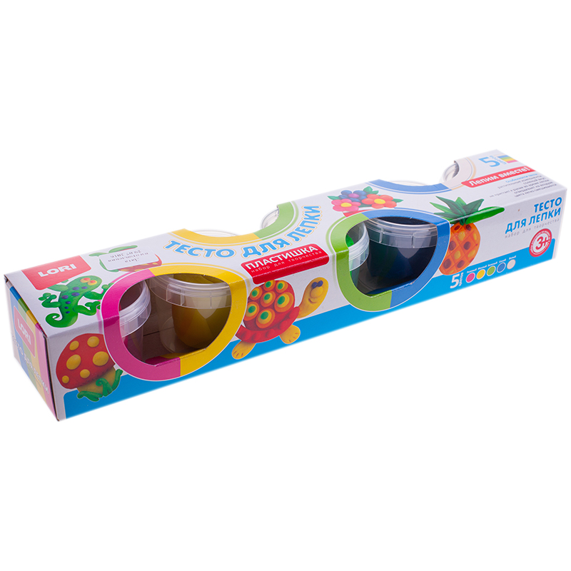 Тесто для лепки Lori "Пластишка", 05 цветов*80г, яркие цвета, картон