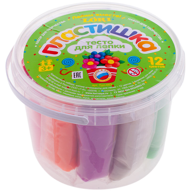 Тесто для лепки Lori "Пластишка", 12 цветов*24г, пластиковый стакан
