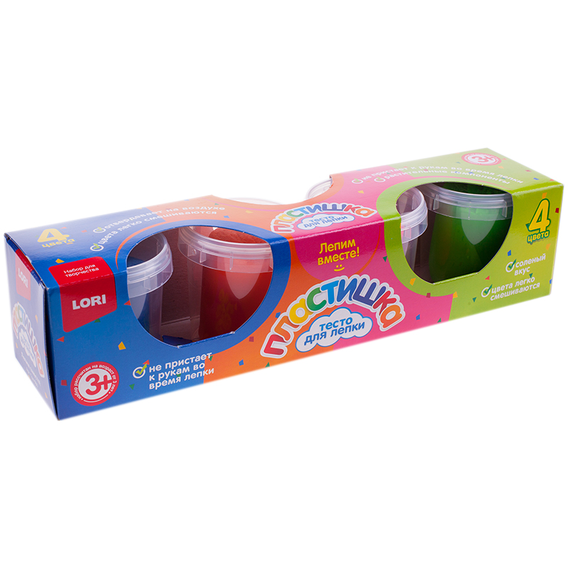Тесто для лепки Lori "Пластишка", 04 цвета*80г, классические цвета, картон
