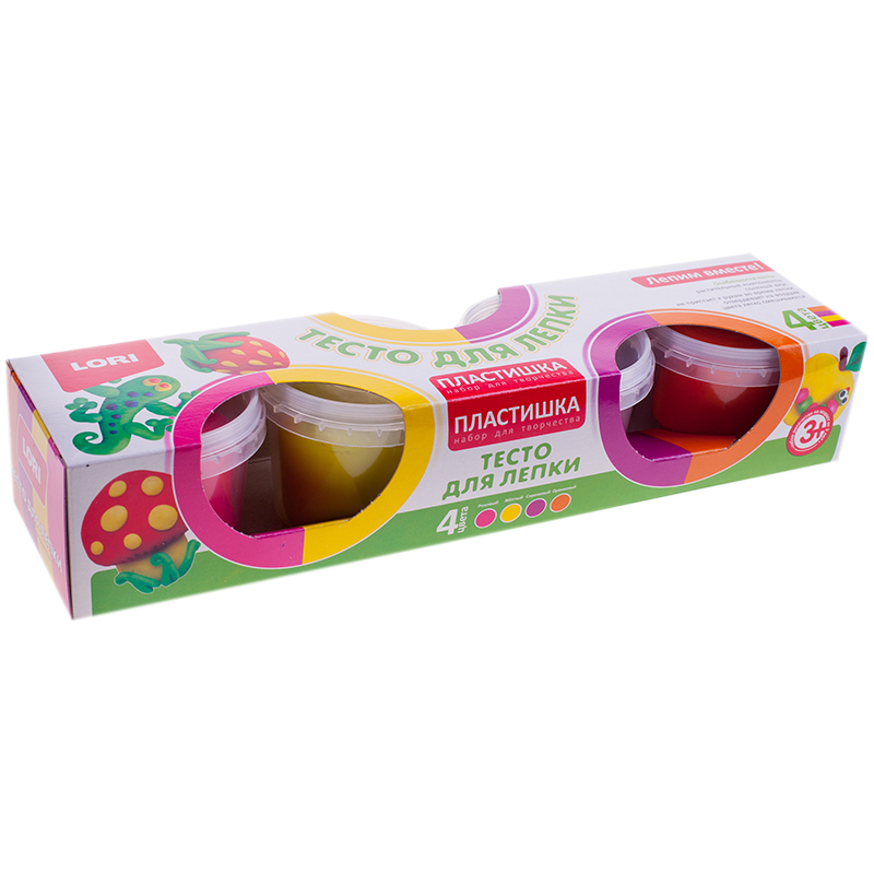 Тесто для лепки Lori "Пластишка", 04 цвета*100г, картон