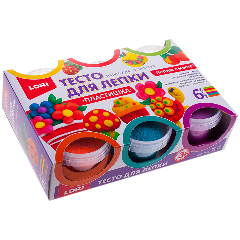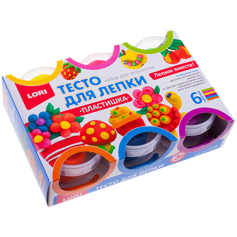 Тесто для лепки Lori "Пластишка", 06 цветов*80г, яркие цвета, картон