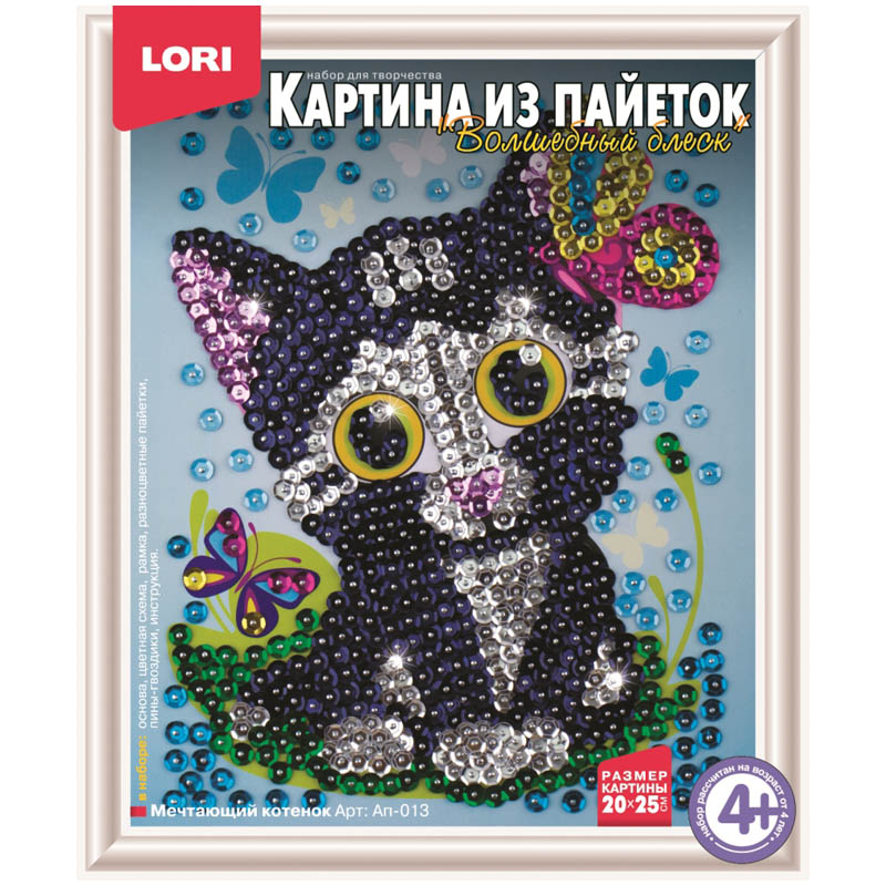 Аппликация-картина из пайеток Lori "Мечтающий котенок", 20*25см, от 4-х лет