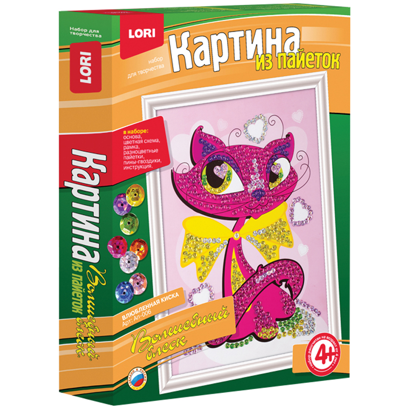 Аппликация-картина из пайеток Lori "Влюбленная киска", 25*33см, от 4-х лет