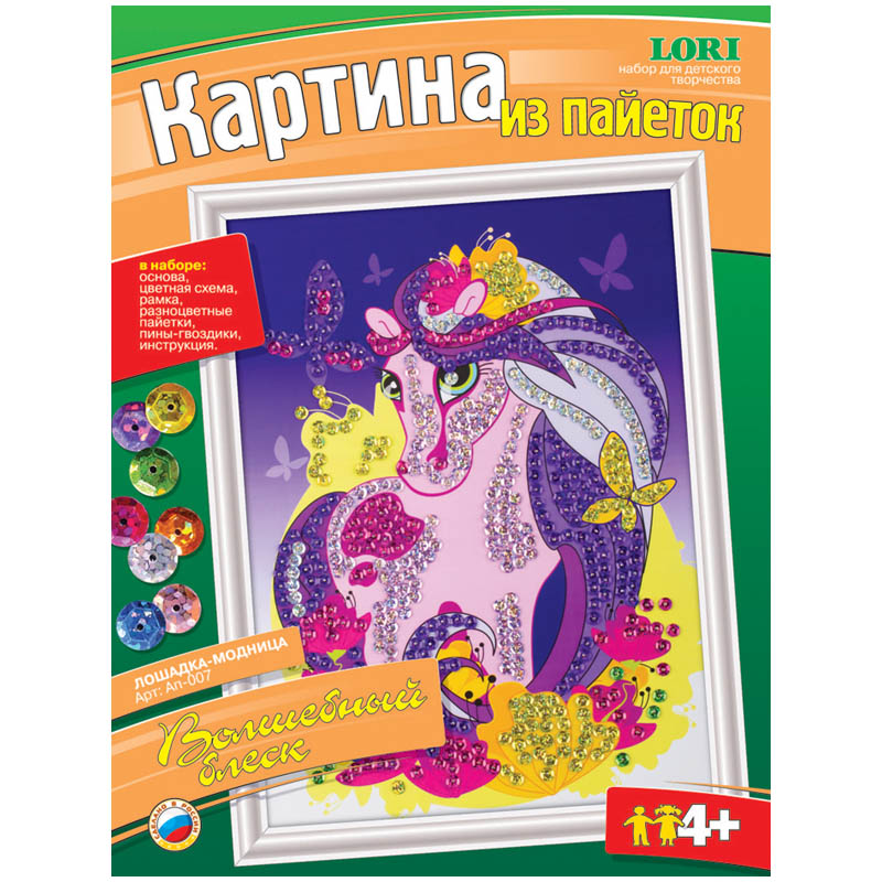 Аппликация-картина из пайеток Lori "Лошадка-модница", 25*33см, от 4-х лет