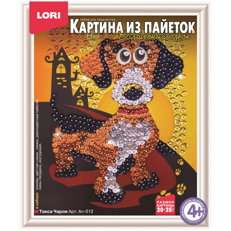 Аппликация-картина из пайеток Lori "Такса Чарли", 20*25см, от 4-х лет