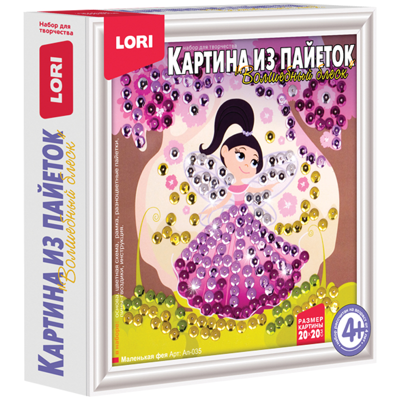 Аппликация-картина из пайеток Lori "Маленькая фея", 20*20см, от 4-х лет