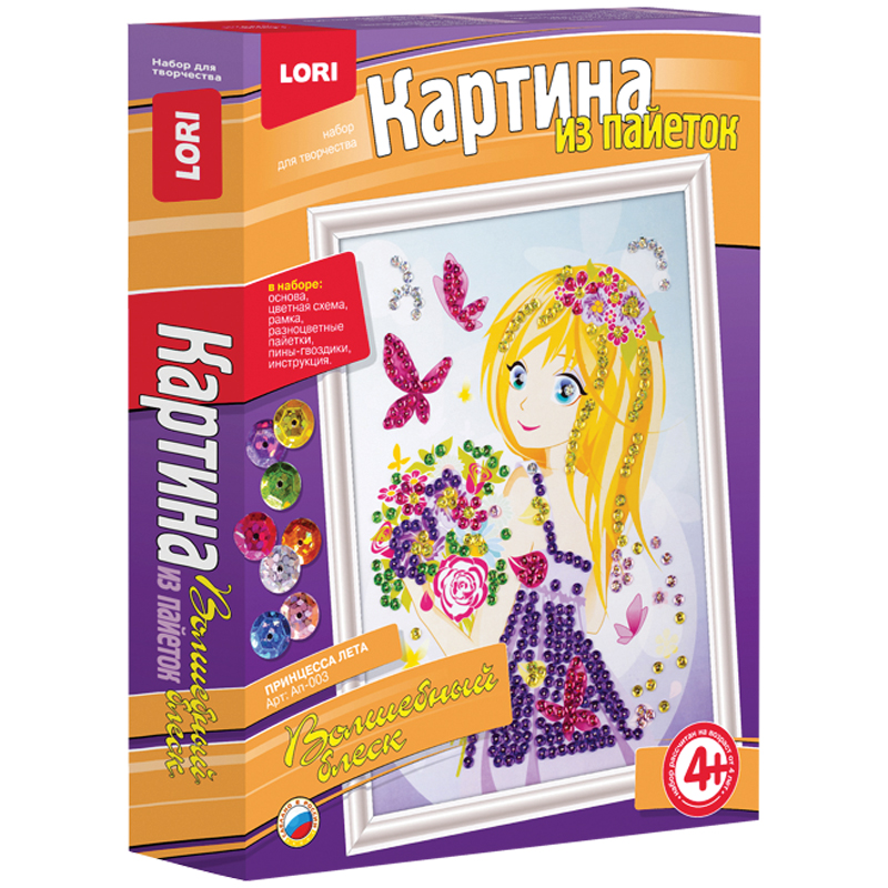 Аппликация-картина из пайеток Lori "Принцесса лета", 25*33см, от 4-х лет