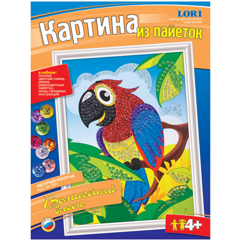 Аппликация-картина из пайеток Lori "Пестрый попугай", 25*33см, от 4-х лет