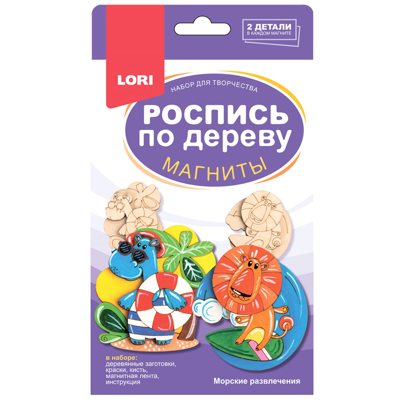 Набор для росписи изделий из дерева Lori "Магниты. Морские развлечения", картонная коробка с европодвесом