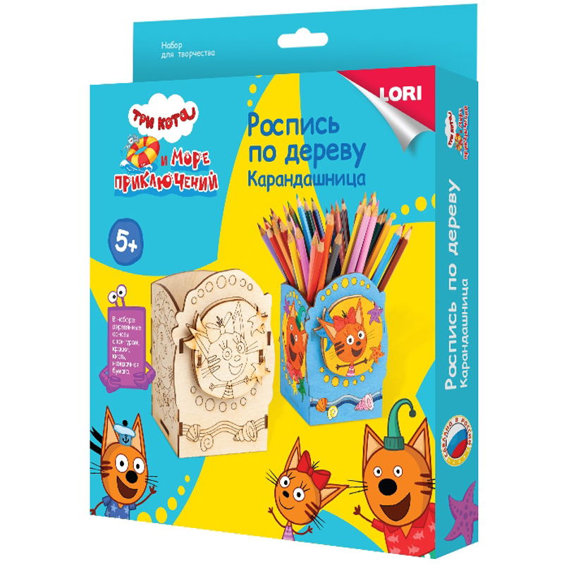 Роспись по дереву Lori "Карандашница. Три кота"