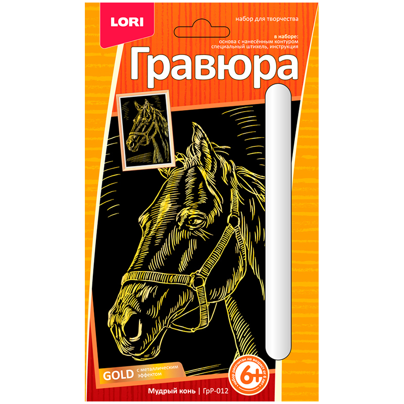 Гравюра малая с эффектом золота Lori "Мудрый конь", 10*15см