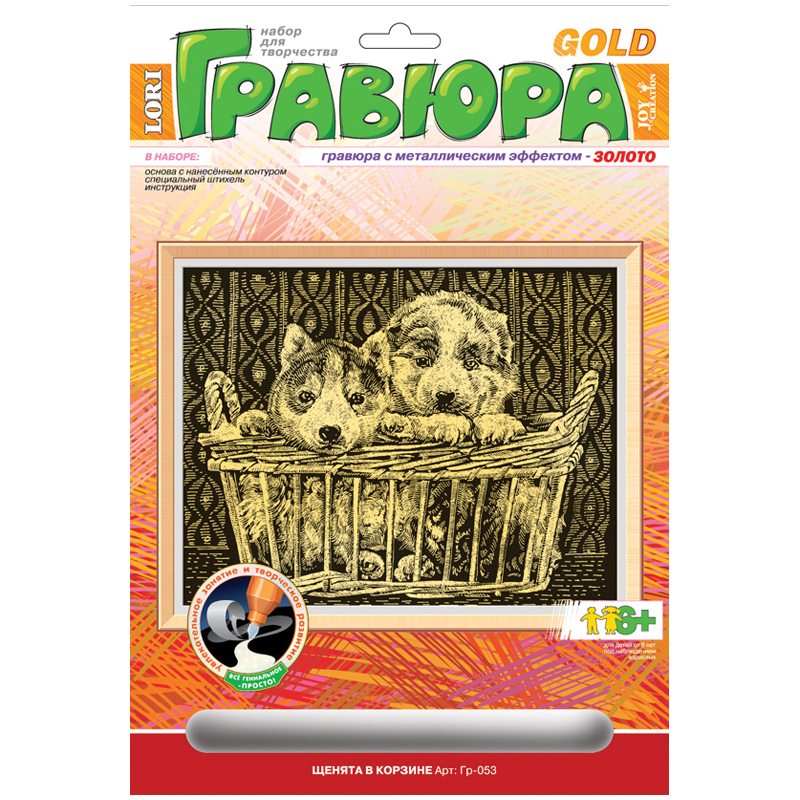 Гравюра с эффектом золота "Котёнок", 18х24 см, основа, штихель, LORI, Гр-051