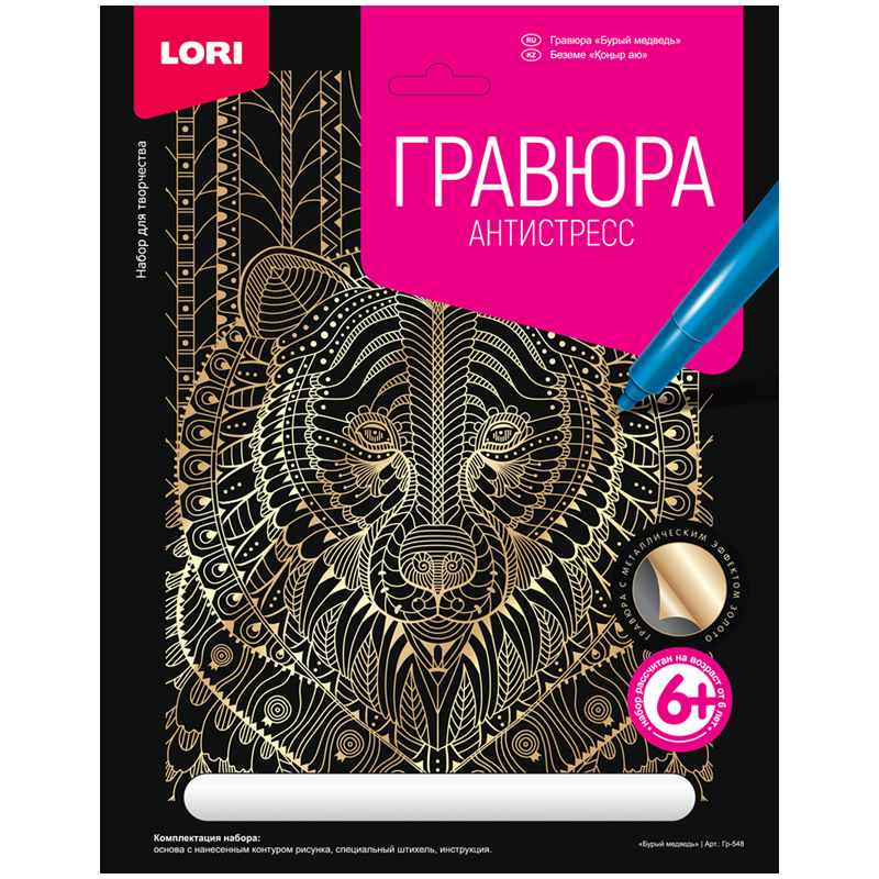 Гравюра с эффектом золота Lori "Антистресс. Бурый медведь", 23,5*17,5см