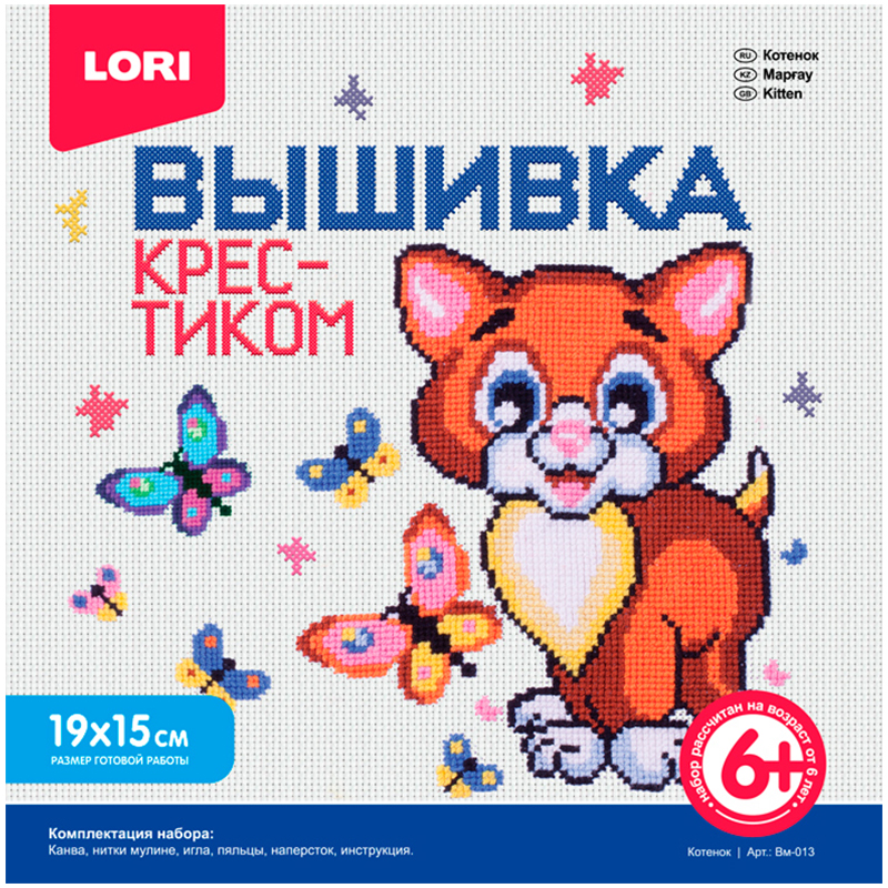 Вышивка крестиком мулине Lori "Котенок", с пяльцами