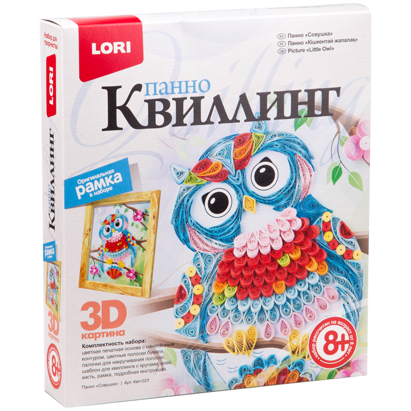 Квиллинг-панно Lori 3D "Совушка", с рамкой, картонная коробка