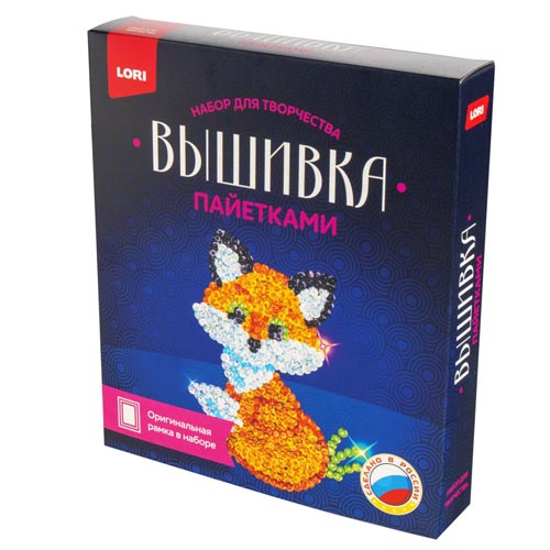 Вышивка пайетками " Lori " Лисёнок, пайетки, бисер, нитки, ткань, игла, цветная схема, инструкция.