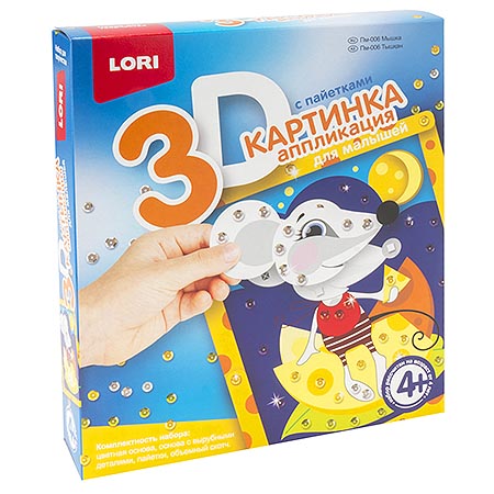 Картина из пайеток " Lori " 20*25см Мышка, 3D, цветная основа, основа с вырубными деталями, пайетки, объемный скотч