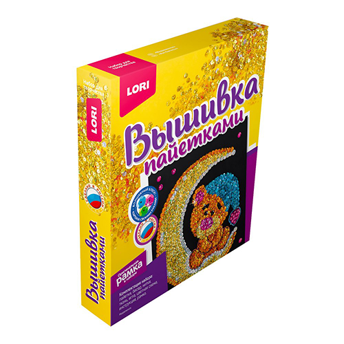 Вышивка пайетками " Lori " Медвежонок, пайетки, бисер, нитки, ткань, игла, цветная схема, картонная рамка, инструкция.