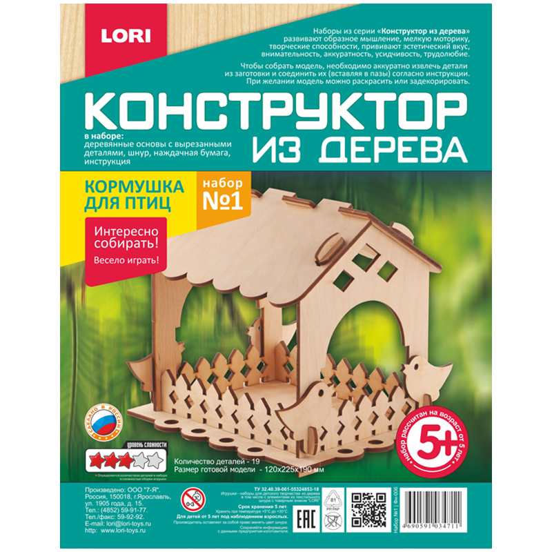 Конструктор деревянный Lori "Кормушка для птиц. Набор №1"