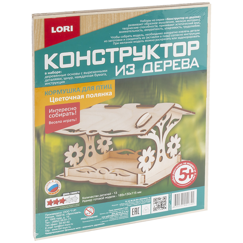 Конструктор деревянный Lori "Кормушка для птиц. Цветочная полянка"