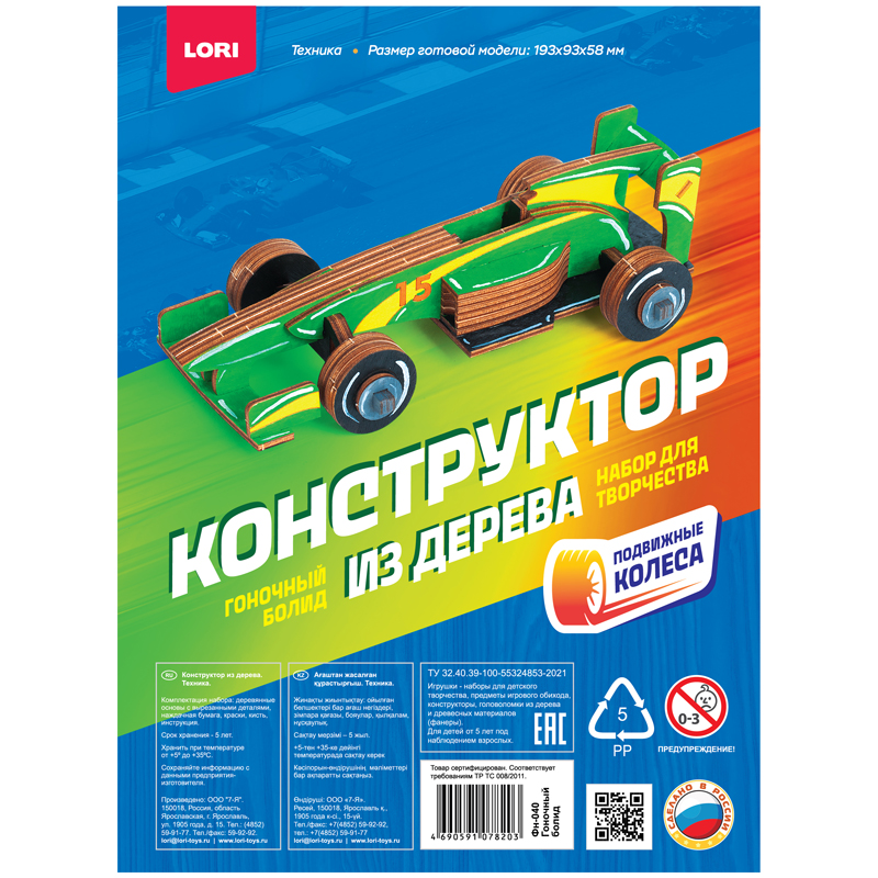 Конструктор деревянный Lori "Гоночный болид", с красками