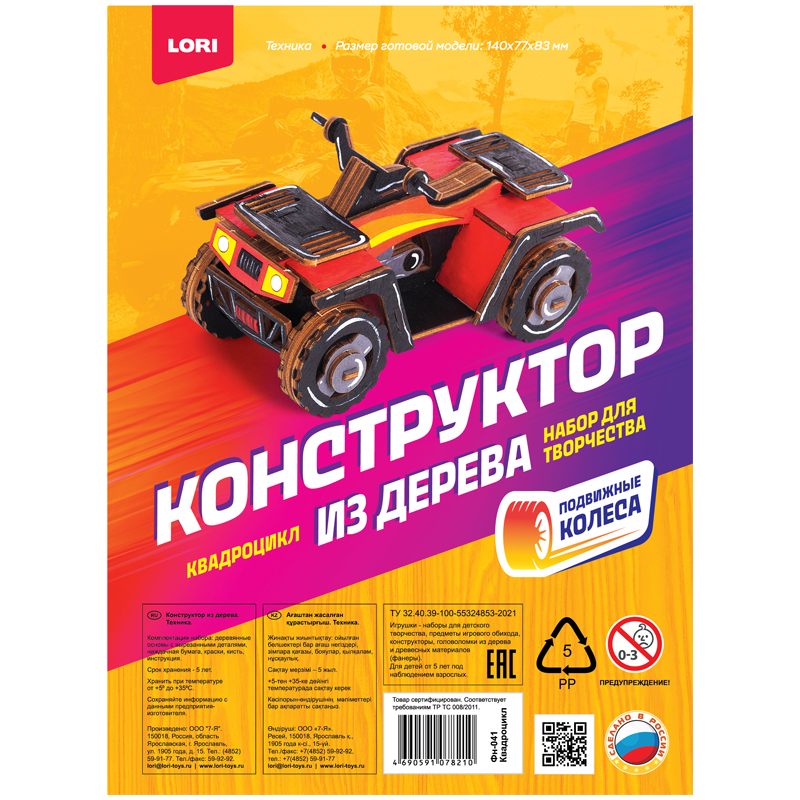 Конструктор деревянный Lori "Квадроцикл", с красками