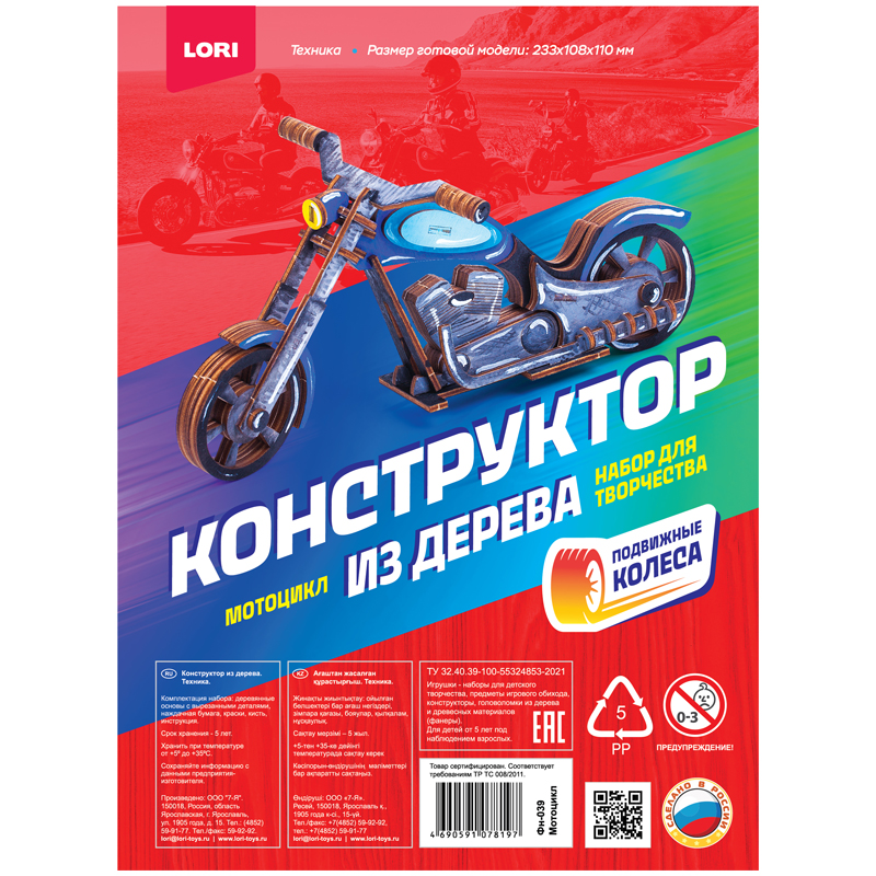 Конструктор деревянный Lori "Мотоцикл", с красками