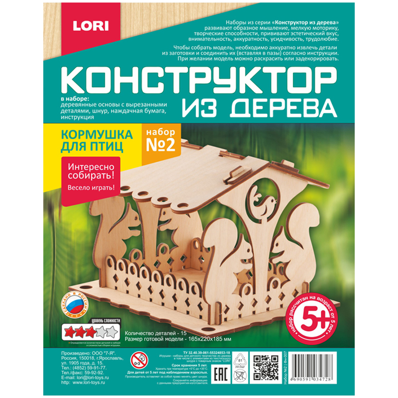 Конструктор деревянный Lori "Кормушка для птиц. Птички-невелички"