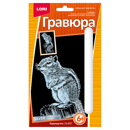 Гравюра " Lori " 10*15см с эффектом серебра Бурундучок, основа с контуром рисунка, штихель, инструкция