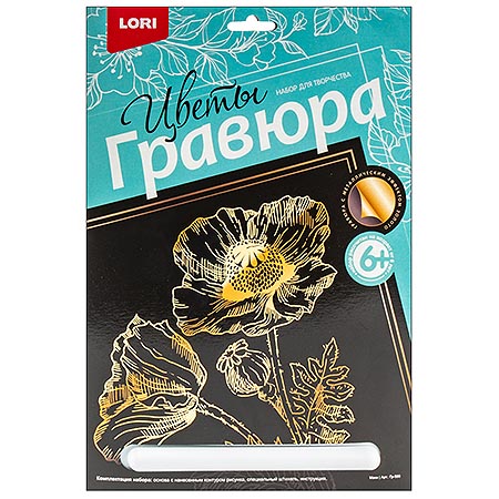 Гравюра " Lori " 18*24см с эффектом золота Маки, основа с контуром рисунка, штихель, инструкция