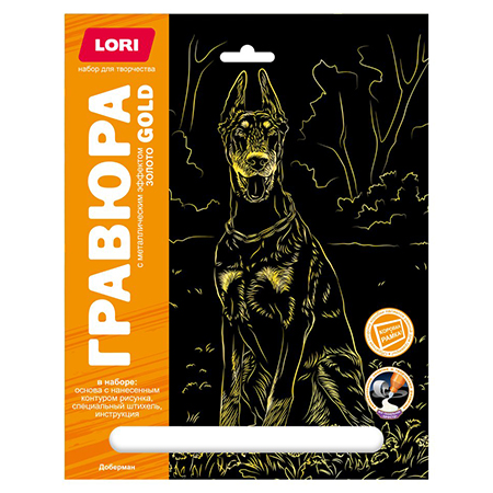 Гравюра " Lori " 18*24см с эффектом золота Собаки. Доберман, основа с контуром рисунка, штихель, инструкция