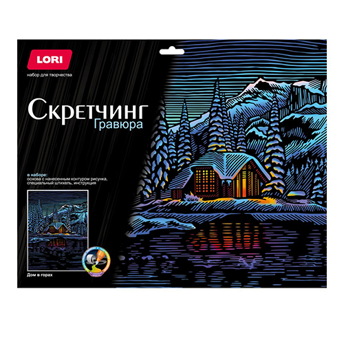 Гравюра " Lori " 30*40см Дом в горах, основа с контуром рисунка, штихель, инструкция