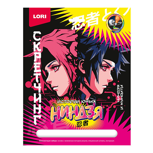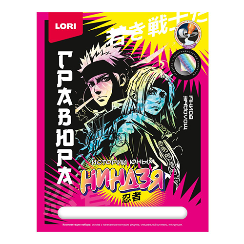 Гравюра " Lori " Истории юных ниндзя 18*24см с цветной основой Ниндзя и куноити, основа с контуром рисунка, штихель, инструкция