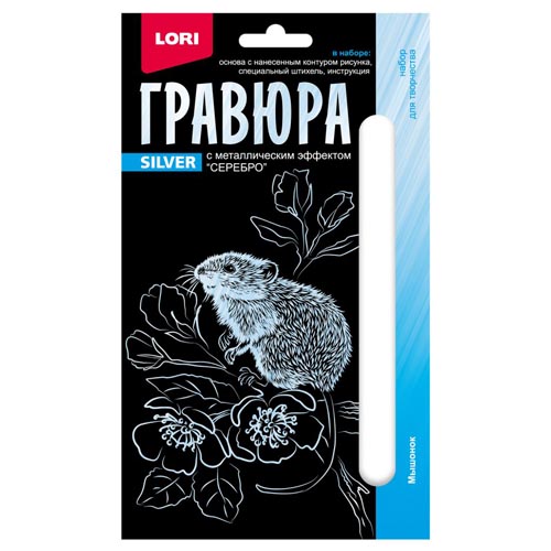 Гравюра " Lori " 10*15см с эффектом серебра Детёныши. Мышонок, основа с контуром рисунка, штихель, инструкция