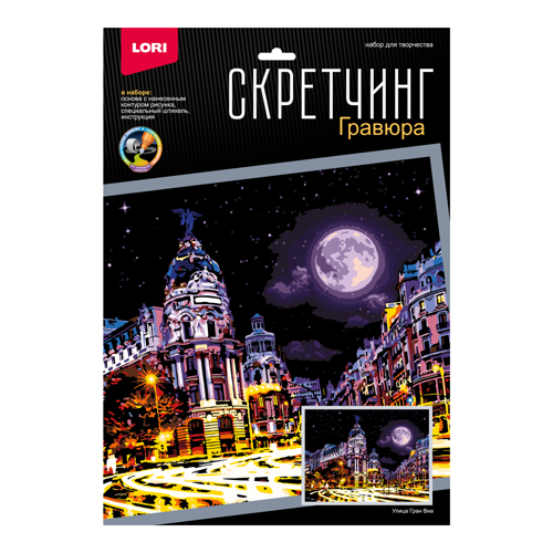 Гравюра " Lori " 30*40см Ночные города Улица Гран Виа, основа с контуром рисунка, штихель, инструкция