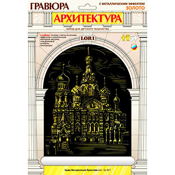 Гравюра " Lori " Архитектура 18*24см с эффектом золота Храм Воскресения Христова, основа с контуром рисунка, штихель, инструкция