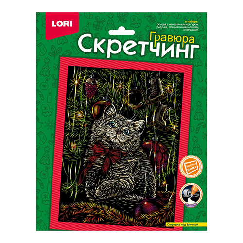 Гравюра " Lori " 18*24см Сюрприз под ёлочкой, основа с контуром рисунка, штихель, инструкция